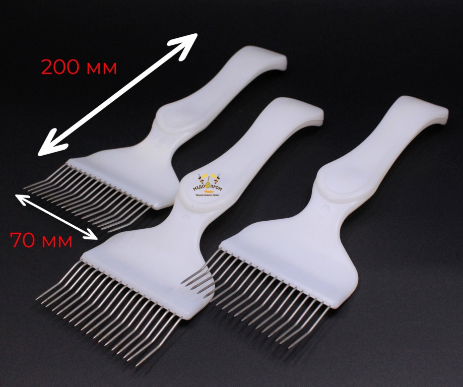 Ця пластикова вилка для бджолярів є незамінним інструментом для розпечатування медових сот перед відкачуванням меду. Виготовлена з високоякісного пластику, вона поєднує в собі легкість і міцність, що забезпечує комфорт при тривалій роботі.